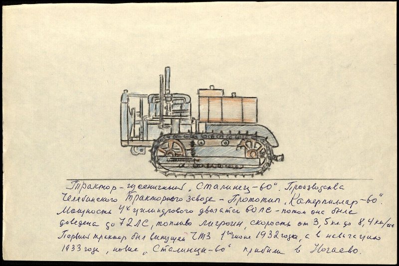 Рисунок Трактор гусеничный Сталинец-60, прибывший в 1933 г. в п. Нагаево (транспорт Дальстроя с 1933 г.) ..jpg