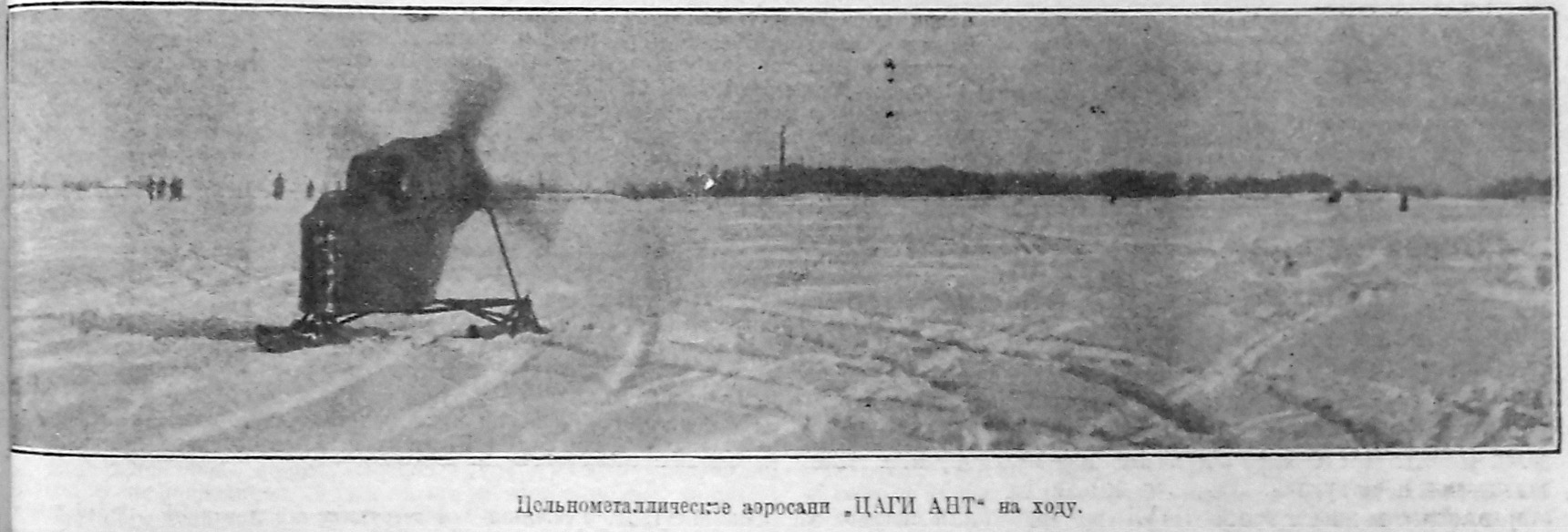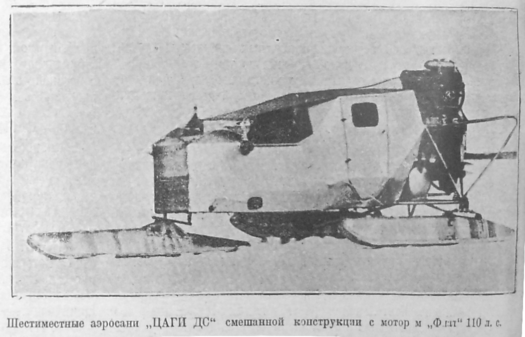 Занявшись специально вопросом об аэросанях, ЦАГИ выпустил целый ряд высоких по качествам моделей, построенных целиком из кольчугалюминия, вырабатываемого трестом Госпромцветмет.