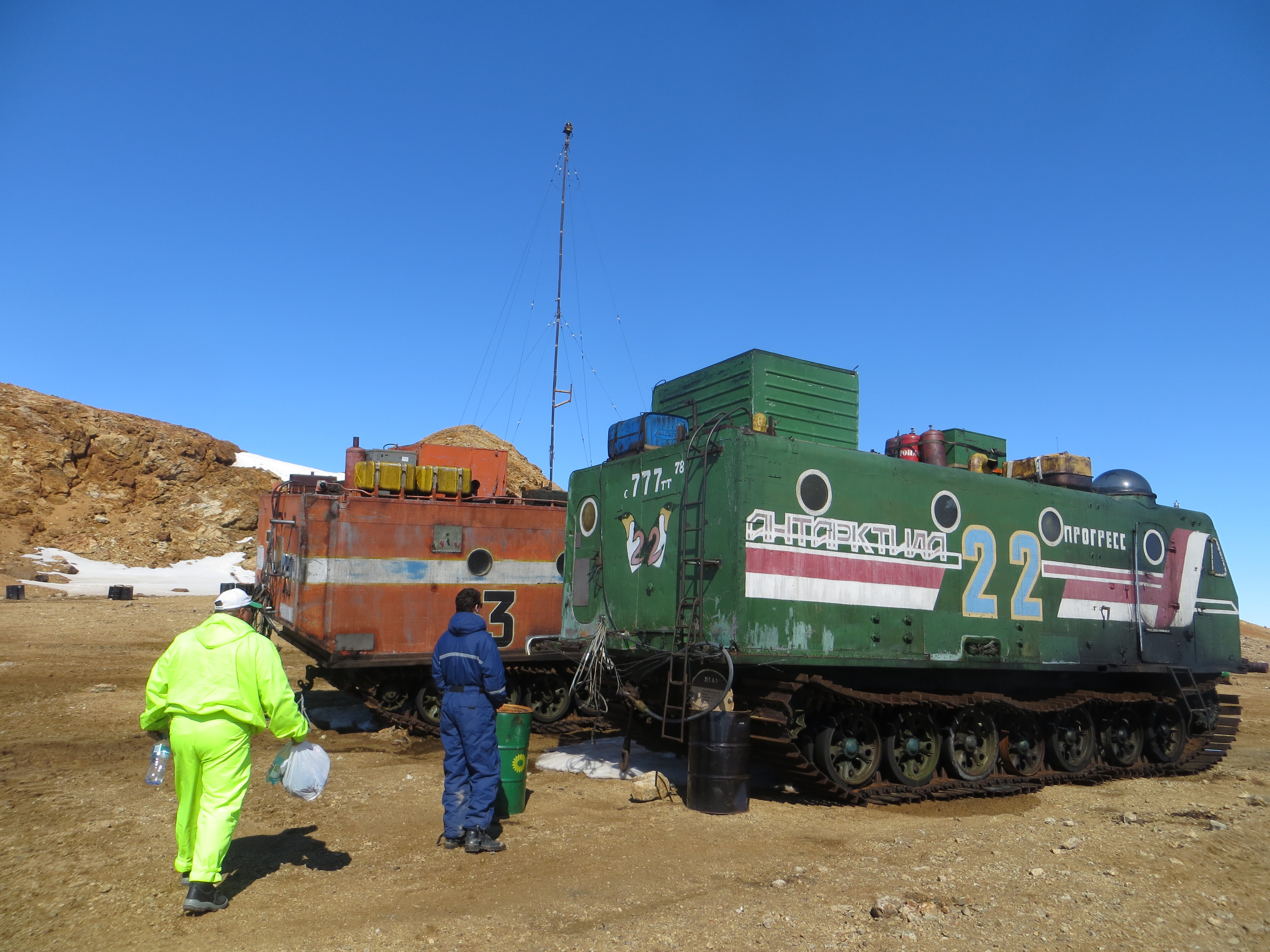В декабре 2015 года мы на "Востоке" завели "двойку", я на ней взлетную полосу укатывал, потом в небольшой походик сходили на ней же, недалеко. Скорее всего это последнее в истории использование "Харьковчанки-2". Больше их , видимо, никто не заведет, очень это сложно, в систему отопления балка только надо вручную закачать около 250 литров тосола, и еще в двигатель залить 150.Долго выгребали снег из капота и дизельного отсека, но завелась нормально через час после включения системы обогрева, там свеча запальная стоит и форсунка, хотя простояла 8 лет. Да и ездить на ней просто кошмар, дизель под сиденьем находится, прокладки многие прогорели, не продохнуть, приходилось с открытыми дверями кататься. Зато в балке тепло несколько суток, там тепловые аккумуляторы стоят размером с бочку."четверка " и "двойка" вполне рабочие, "еденица" как донор запчастей стоит.