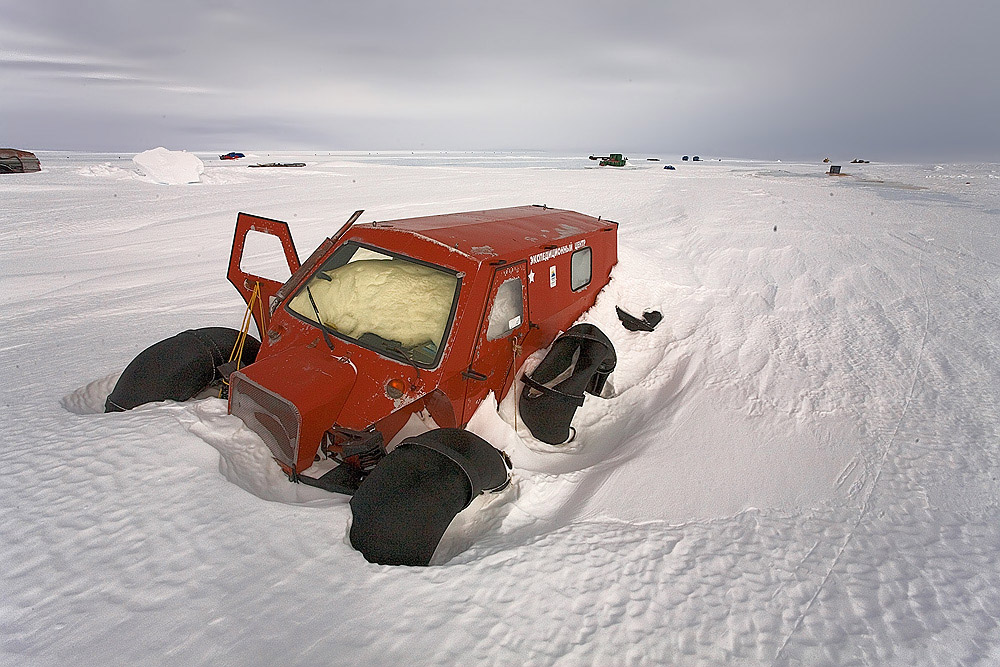 Простояла весь дрейф как памятник. Как почетный приз передали ее на 34-ю. Том Петровский (нач. 34-й) ее реанимировал, но недолго музыка играла, вскоре тачка опять сдохла. Помню, что привезли ее в Мурманск, чего с ней дальше стало не знаю.