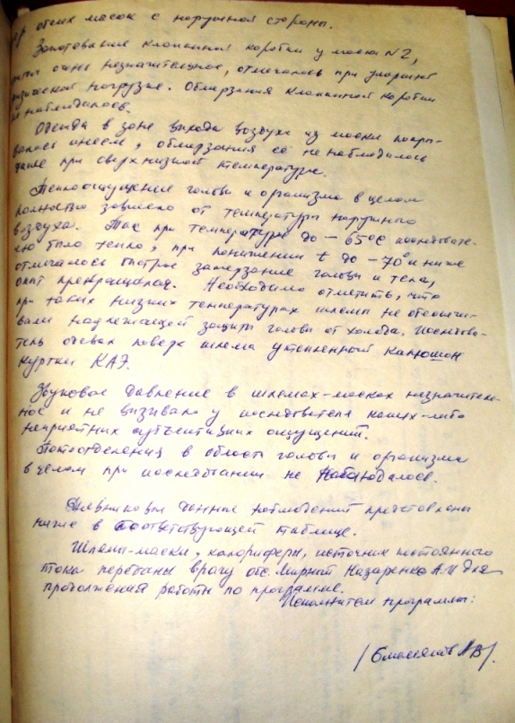 В 29-ю САЭ (1984 год) на антарктической станции "Восток" врачом Емельяновым проводились испытания двух прототипов шлемов-масок для сверхнизких температур .