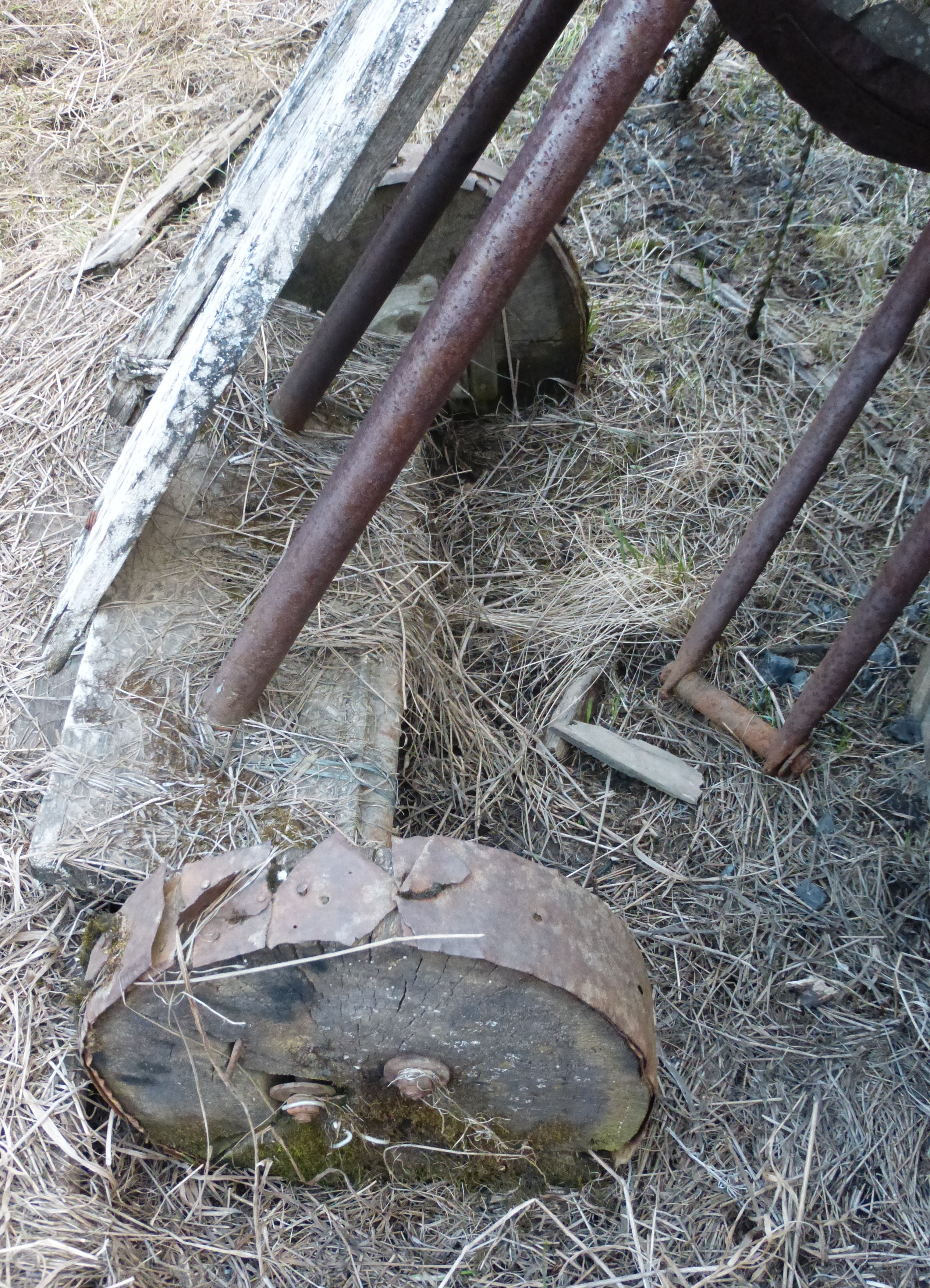 Недавно ездил на охоту к своему другу на избушку в деревню Нарыга, что в 18 км севернее Нарьян-Мара. Деревня разделена на старую и новую деревню. Как то пошел я в новую деревню, по фотографировать, а за одно и познакомиться с тем районом Нарыги и удного из домов, обнаружил присланенную к забору полуразвалившуюся тележку. Тележка, как тележка, а вот колеса деревянные, с наружи обитые лентами метала, жаль хозяина на месте небыло, только фото удалось сделать.