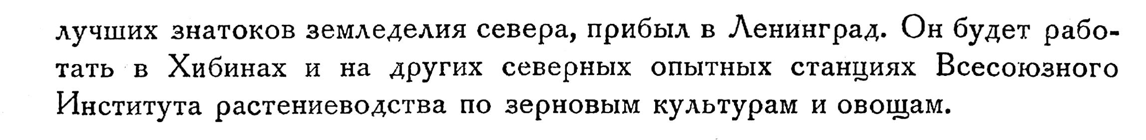 ПРИЕЗД В СССР ПРОФЕССОРА АЛЬБЕРТСА. Проф. Альбертс, бывший директор самой северной опытной станции в САСШ, на Аляске, один из лучших знатоков земледелия севера, прибыл в Ленинград. Он будет работать в Хибинах и на других северных опытных станциях Всесоюзного Института растениеводства по зерновым культурам и овощам.