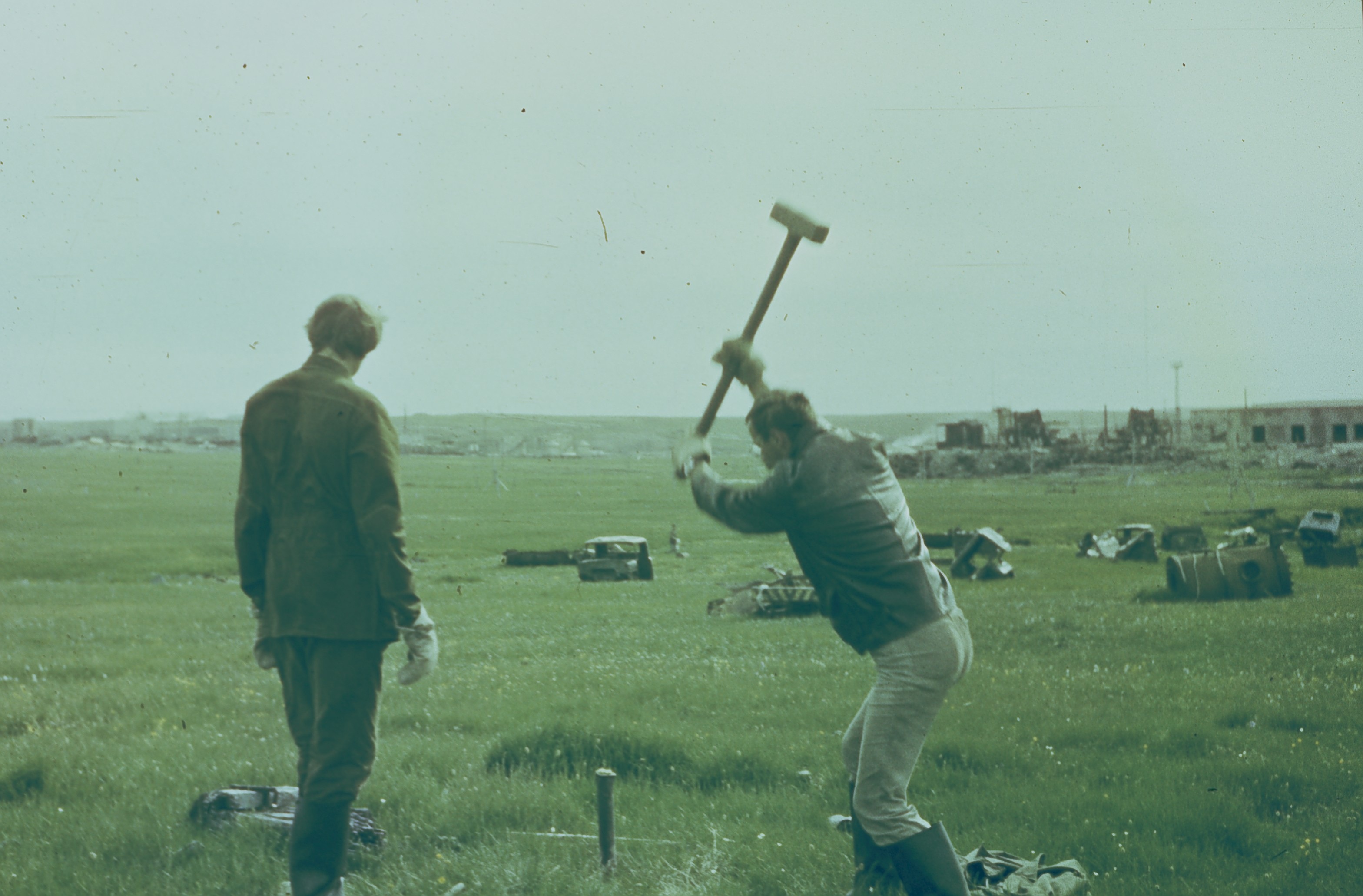 Когда количество металлического и железобетонного хлама достигло немыслимой концентрации, я все же пожалела, что сознательно оградила себя от информации об этом месте. Увиденное наводило только на одну мысль: здесь явно были продолжительные бои. Первое впечатление – ужас и непонимание. Догадавшись об этих ощущениях, мой попутчик генеральный директор компании «ТРАНС-НАО шипинг» Владимир Тюрин решил поделиться воспоминаниями о светлом прошлом Амдермы. «Во времена СССР здесь было много военных: пограничники, летчики. Иной раз по 15-25 истребителей в ряд на аэродроме стояло. Вон в том здании был магазин, мы частенько здесь закупали колбасу, ее так смешно поставляли – в ящиках с опилками, как снаряды. Амдерма раньше снабжалась по первому классу, как и Москва. Правее – ясли-сад „Ручеек“, а эти дома строились по продвинутой по тем временам финской технологии – из фанеры с утеплителем. Тогда это был прогресс, дома не продувались», – рассказал Тюрин.