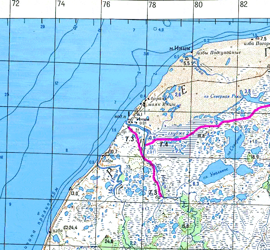 Лоция дает представление и о том, как жили поморы в то время. Сообщается, к примеру, что где-то в полутора верстах на правом берегу реки Большая Инца есть одноименное маяку селение из семи домов. Живут в нем 59 человек. На эти семь домов приходится: коров с быками 12 голов, 30 овец и лодок с карбасами 29 штук! Поделите примерно это хозяйство на количество домов и догадаетесь, что отнюдь не бедовали поморы на рубеже века на глухом архангельском берегу.