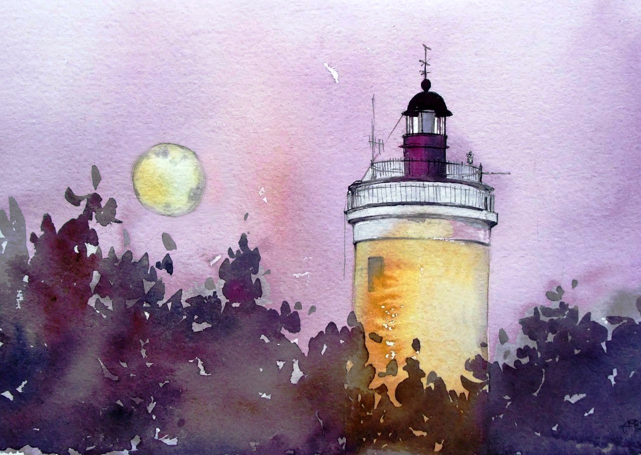 Акварель - Анна Михайлова.Маяк Мудьюгский (Белая башня).