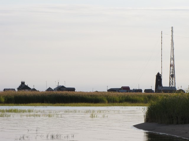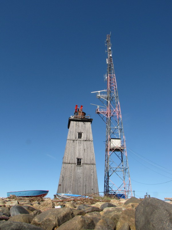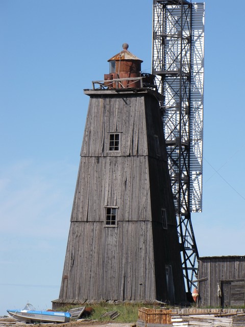 Кроме маяка, на Мудьюгском острове установлен створ светящих башен, ведущих по первому колену Двинского фарватера. История их такова.