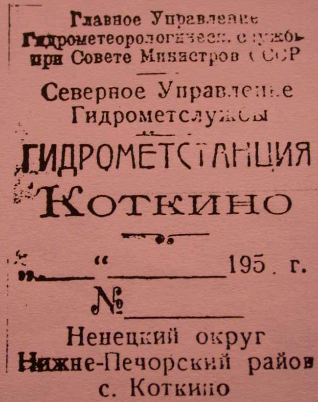 Почтовый адрес: 166724, Ненецкий АО, с. Коткино, Коткинская метеорологическая станция.