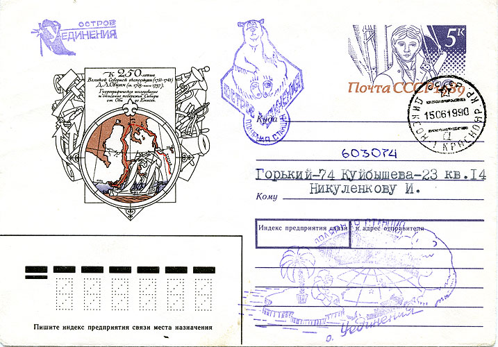 Почта: о.Уединения-о.Моржовец (Диксон 23.06.94 - Васьково 30.06.94)