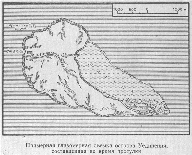 Наша полярная станция «Остров Уединения» находится в центре Карского моря. Много событий предшествовало появлению ее здесь, среди льдов... Остров Уединения был открыт и нанесен на карту в 1878 году норвежской экспедицией Э. Иоганнесена. Второй раз, в 1915 году, остров посетила экспедиция на судне «Эклипс», которая разыскивала пропавшую экспедицию В. А. Русанова.