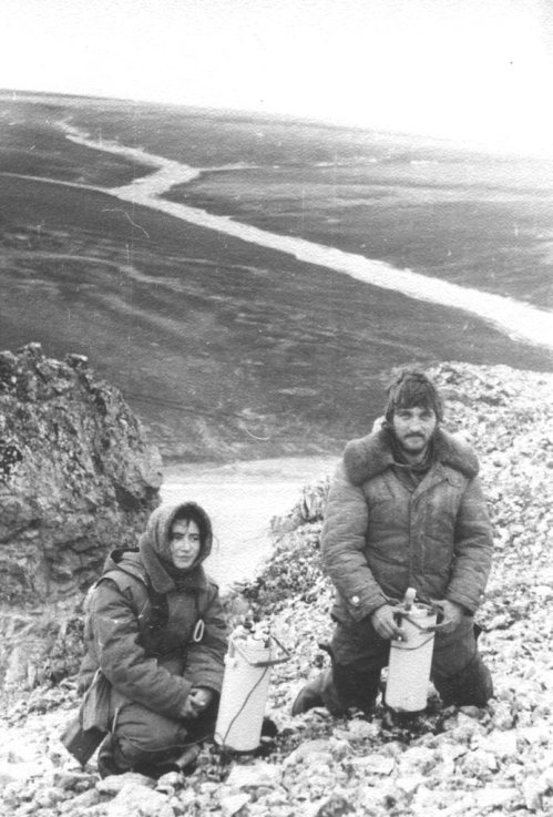 Любочка и Серёжа Раевский наблюдают на гравиметрах. Остров Котельный, 1976.