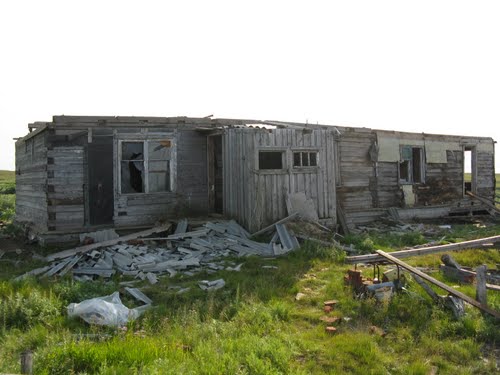 От участка метеостанции практически ничего не осталось. Жилой дом, баня, еще в неплохом состоянии, а здание ДЭС, технического помещения, метеоплощадки, частично разрушены и разграблены. Чуть в стороне стоят два балка дачников и один балок, видимо для хранения топлива, но они, также в ужасном состоянии. Еще здесь возвышаются несколько антенн, небольшой маячок и вышка створ. Вся территория метеостанции и береговая полоса, захламлена различным мусором, пустыми, ржавыми бочками, металлоломом и древесиной. Первым делом, мы очистили от мусора пол дома и баню. Натаскали с берега к бане дров и распилили их, найденной в кустах пилой – двухручкой. Натаскали для бани воды из ручья и протопили ее, чтобы завтра можно было там помыться. Установили на самом видном месте флаг «Истоков».