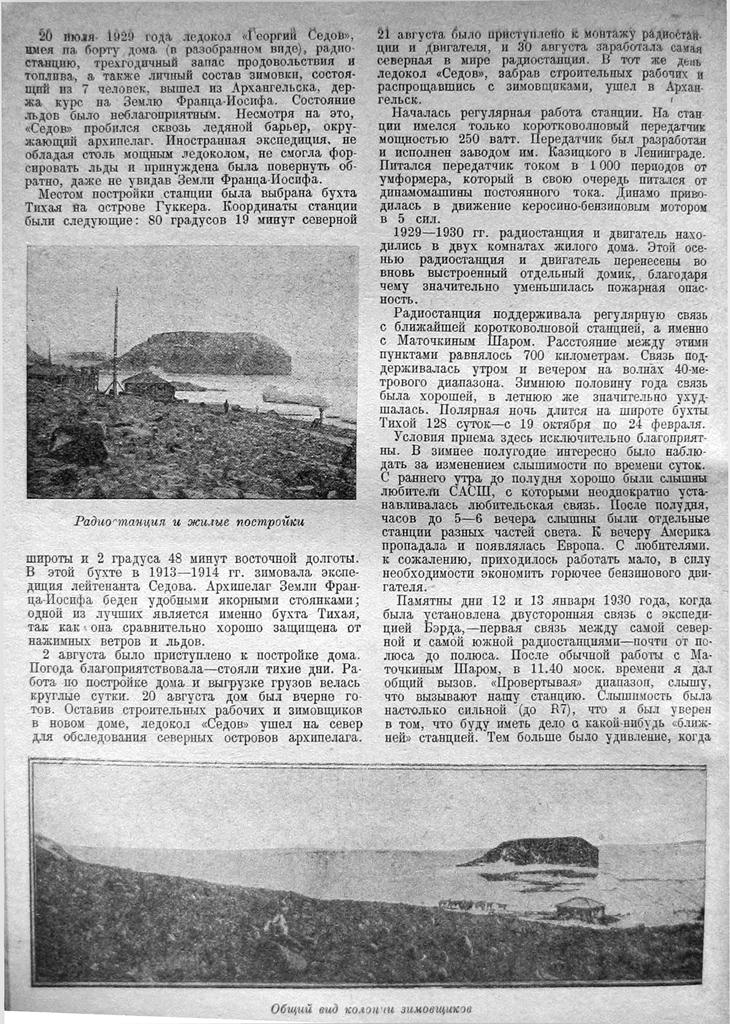 Радио на Земле Франца-ИосифаВесной 1929 года Институт по изучению Севера приступил к снаряжению арктической экспедиции, целью которой была постройка в архипелаге Земли Франца-Иосифа, находящемся в полярном секторе СССР, самой северной в мире радиостан-