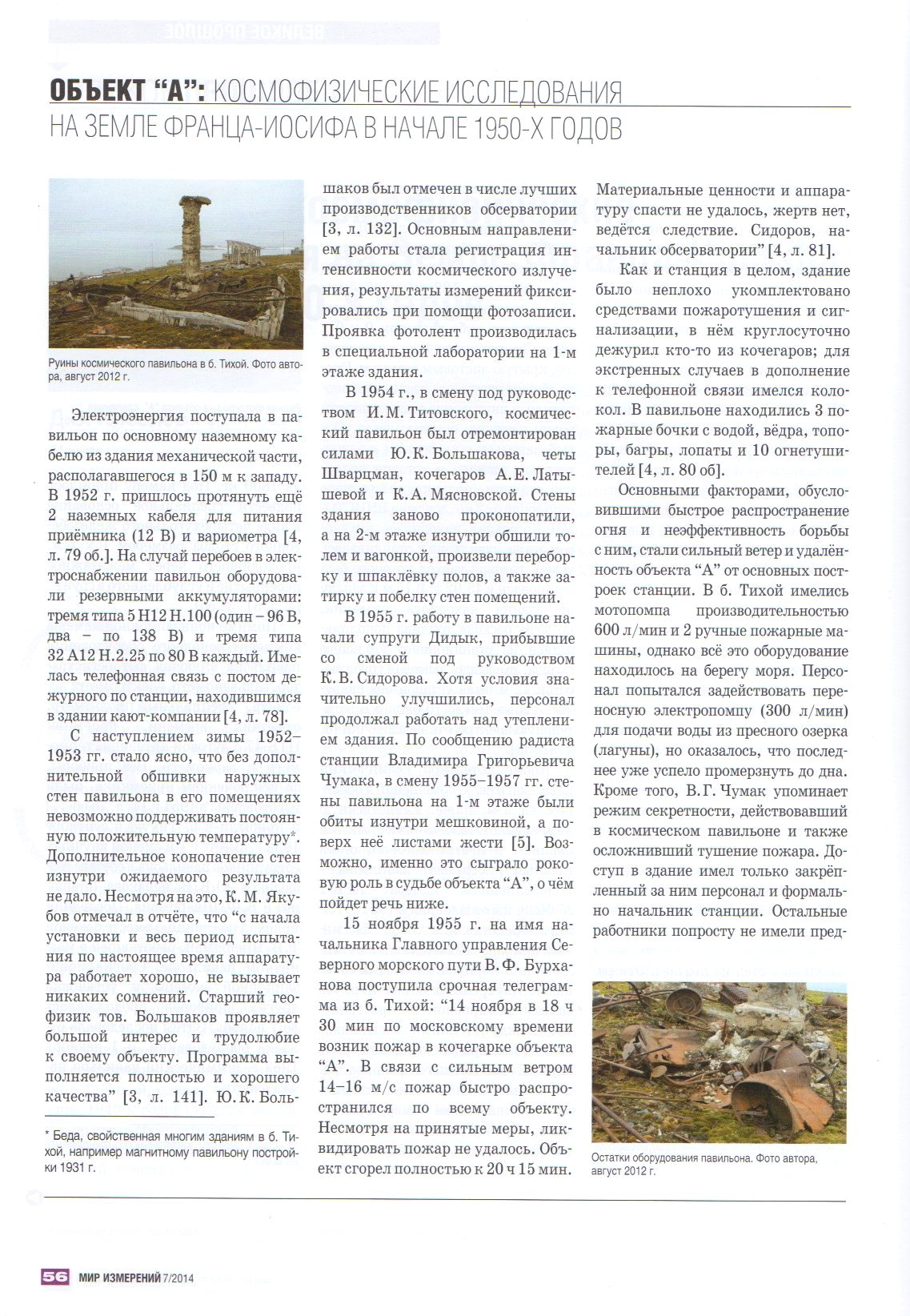 ОБЪЕКТ "А": КОСМОФИЗИЧЕСКИЕ ИССЛЕДОВАНИЯ НА ЗЕМЛЕ ФРАНЦА-ИОСИФА В НАЧАЛЕ 1950-Х ГГ.