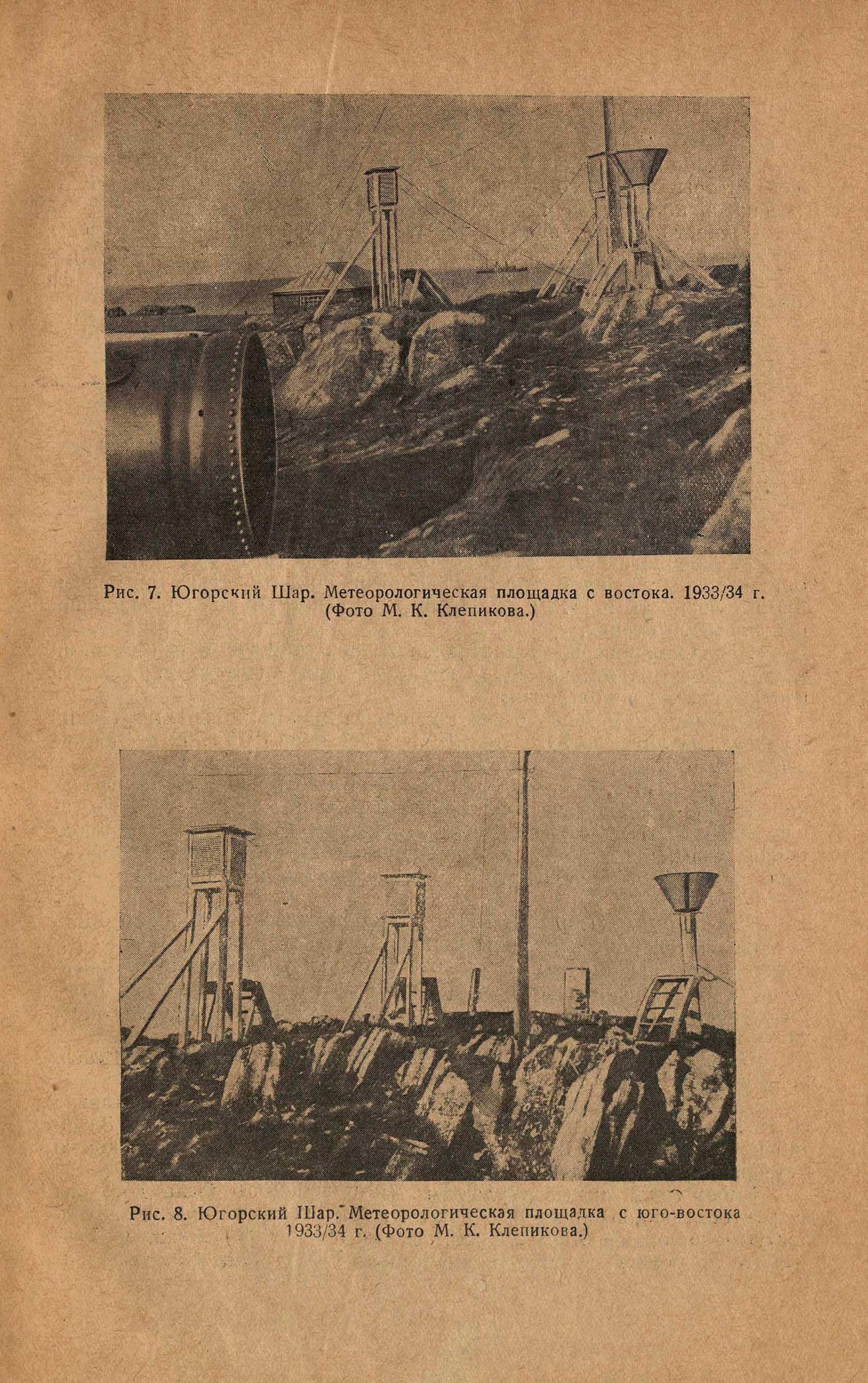 ЮГОРСКИЙ ШАР. Для наблюдений на станции в Югорском Шаре в течение зимовки 1933/34 г. в числе десяти человек обслуживающего персонала остались метеорологи В. А. Оглоблин и М. Н. Клепиков.