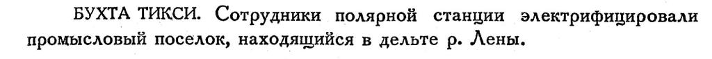 БУХТА ТИКСИ (УСТЬЕ РЕКИ ЛЕНЫ). На станции в бухте Тикси в текущем году зимуют десять человек. Метеорологические наблюдения ведутся В. А. Семыкиным и А. И. Улановым.