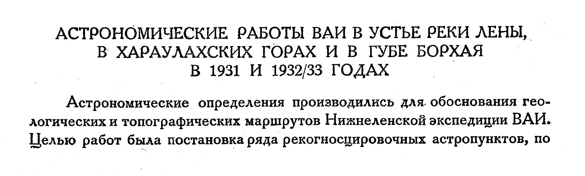 АСТРОНОМИЧЕСКИЕ РАБОТЫ ВАИ В УСТЬЕ РЕКИ ЛЕНЫ,