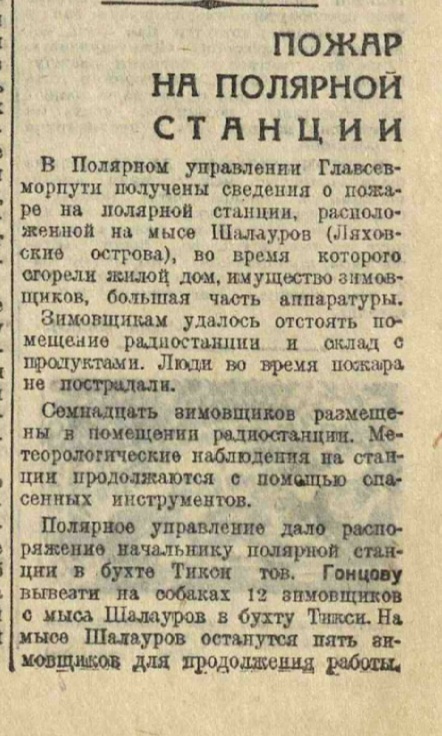Пилот И. И. ЧЕРЕВИЧНЫЙКАК МЫ ВЫВЕЗЛИ ШАЛАУРОВЦЕВКогда на Ляховских островах зимовка Шалаурова сгорела и люди остались без крова, мною было получено распоряжение от Управления полярной авиации о том, чтобы подготовить самолет для вывозки зимовщиков в бухту Тикси.