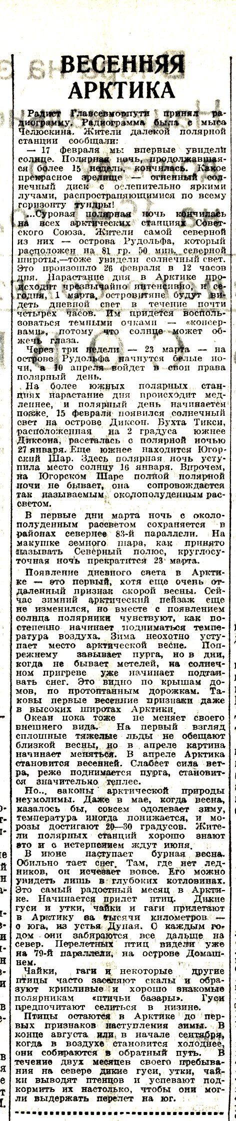Первый послевоенный отпуск полярников //Вечерняя Москва , 1 марта, 1946, № 51 (6722)