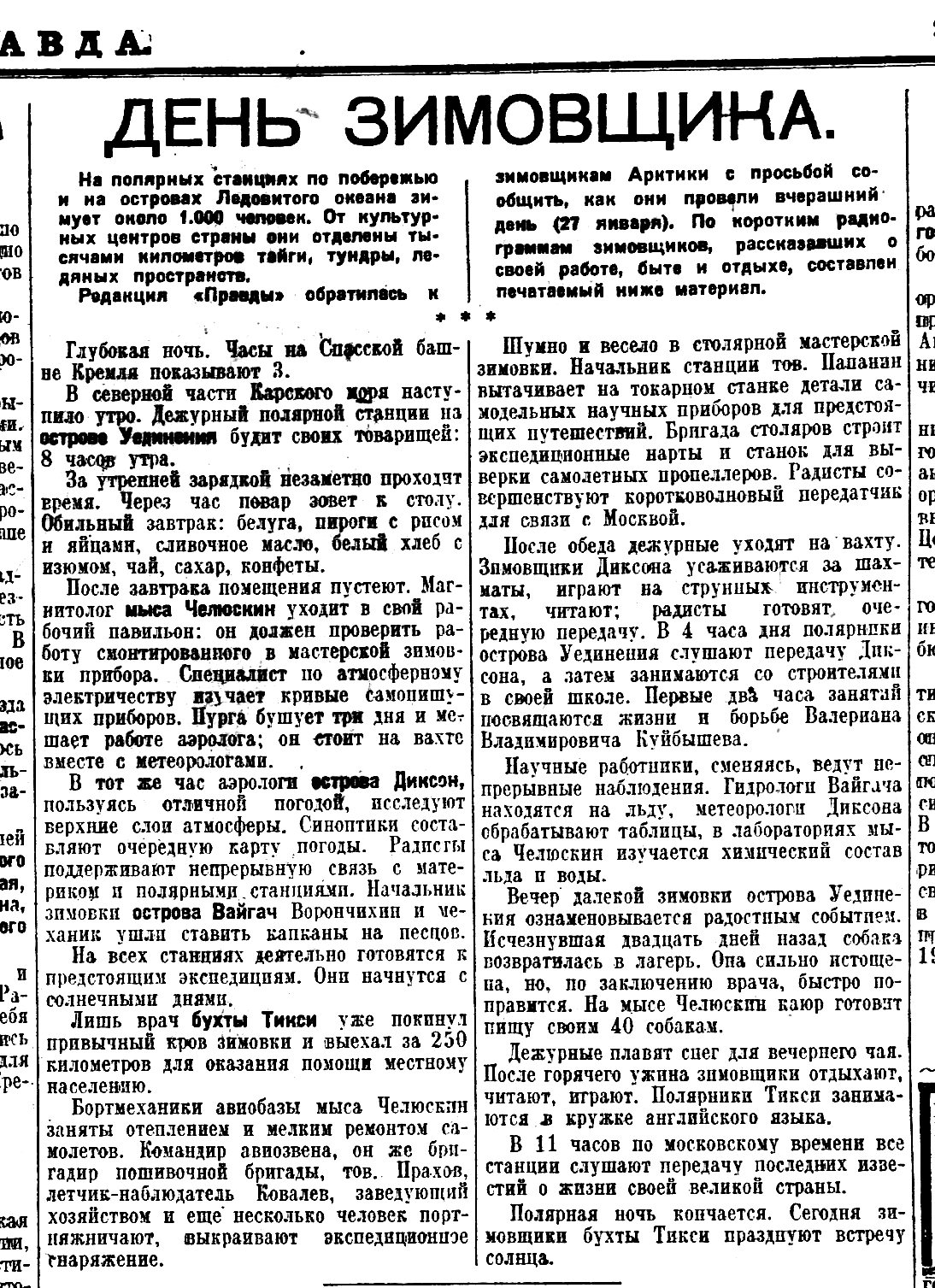День зимовщика  Правда,1935, № 28 (6274), 29 января.jpeg
