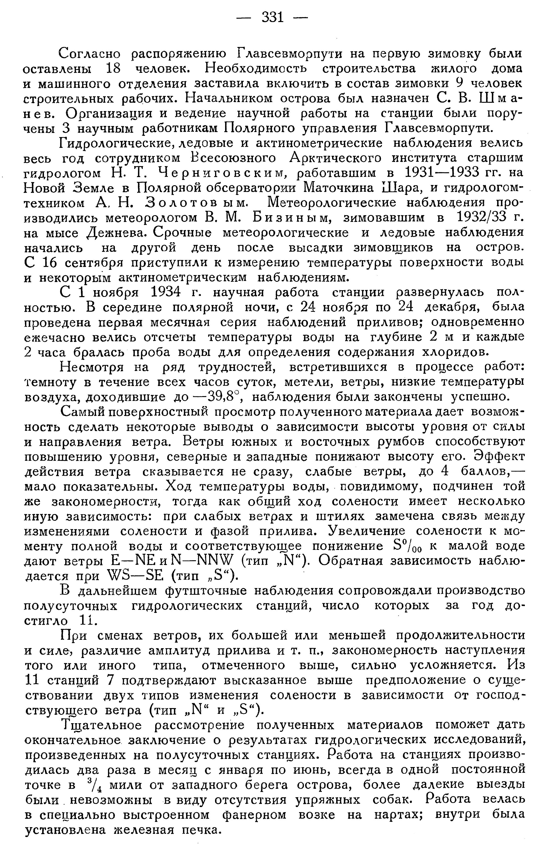 Несмотря на ряд трудностей, встретившихся в процессе работ: темноту в течение всех часов суток, метели, ветры, низкие температуры воздуха, доходившие до —39, 8°, наблюдения были закончены успешно.
