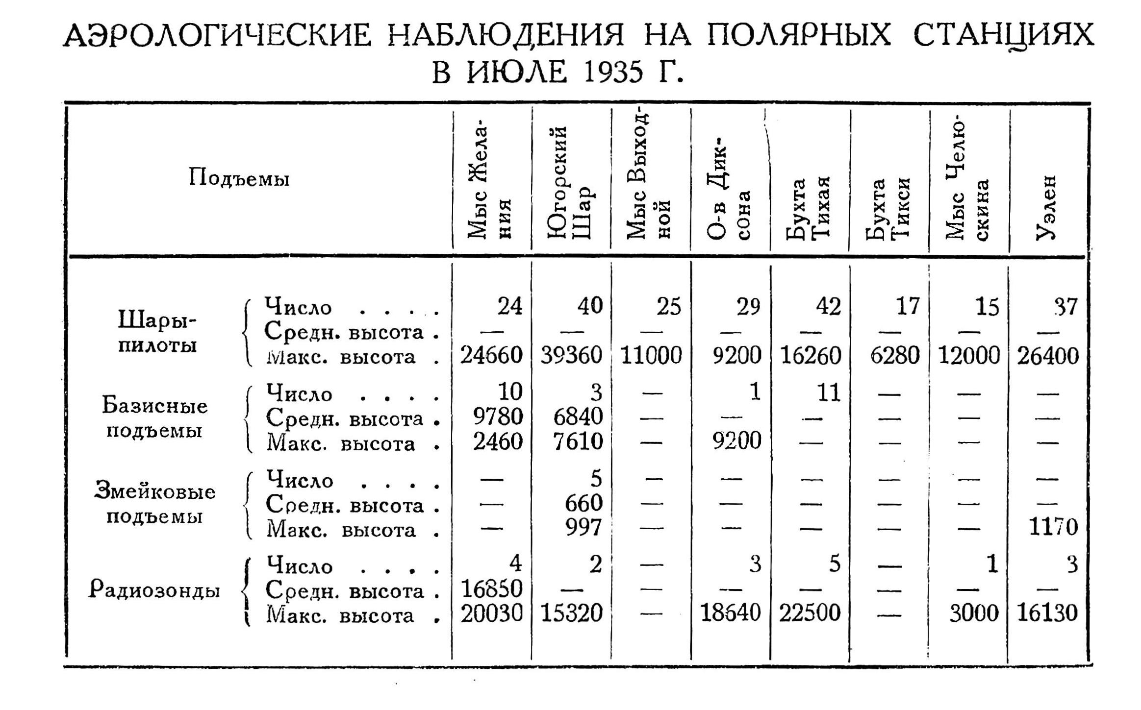 АЭРОЛОГИЧЕСКИЕ НАБЛЮДЕНИЯ НА ПОЛЯРНЫХ СТАНЦИЯХ В МАЕ 1935 Г.