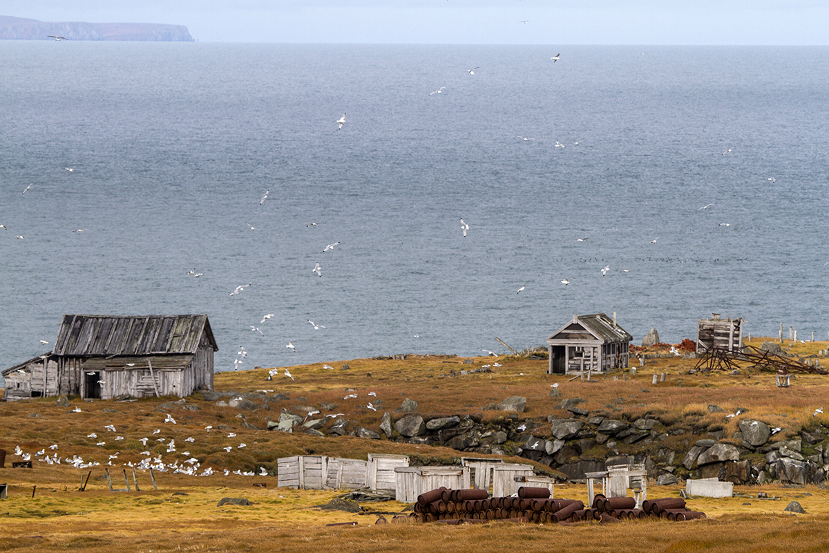 Заброшенная полярная станция. Остров Колючин. Чукотка. korostelev 1 декабря, 2015На противоположной от жилища Толи Кочнева стороне острова Колючин разваливается заброшенная полярная станция. Прямо за ней на скалах располагается огромный птичий базар, к которому я направлялся. Так что не упустил возможности и полазить по оставленным много лет назад времени на съедение постройкам полярки.