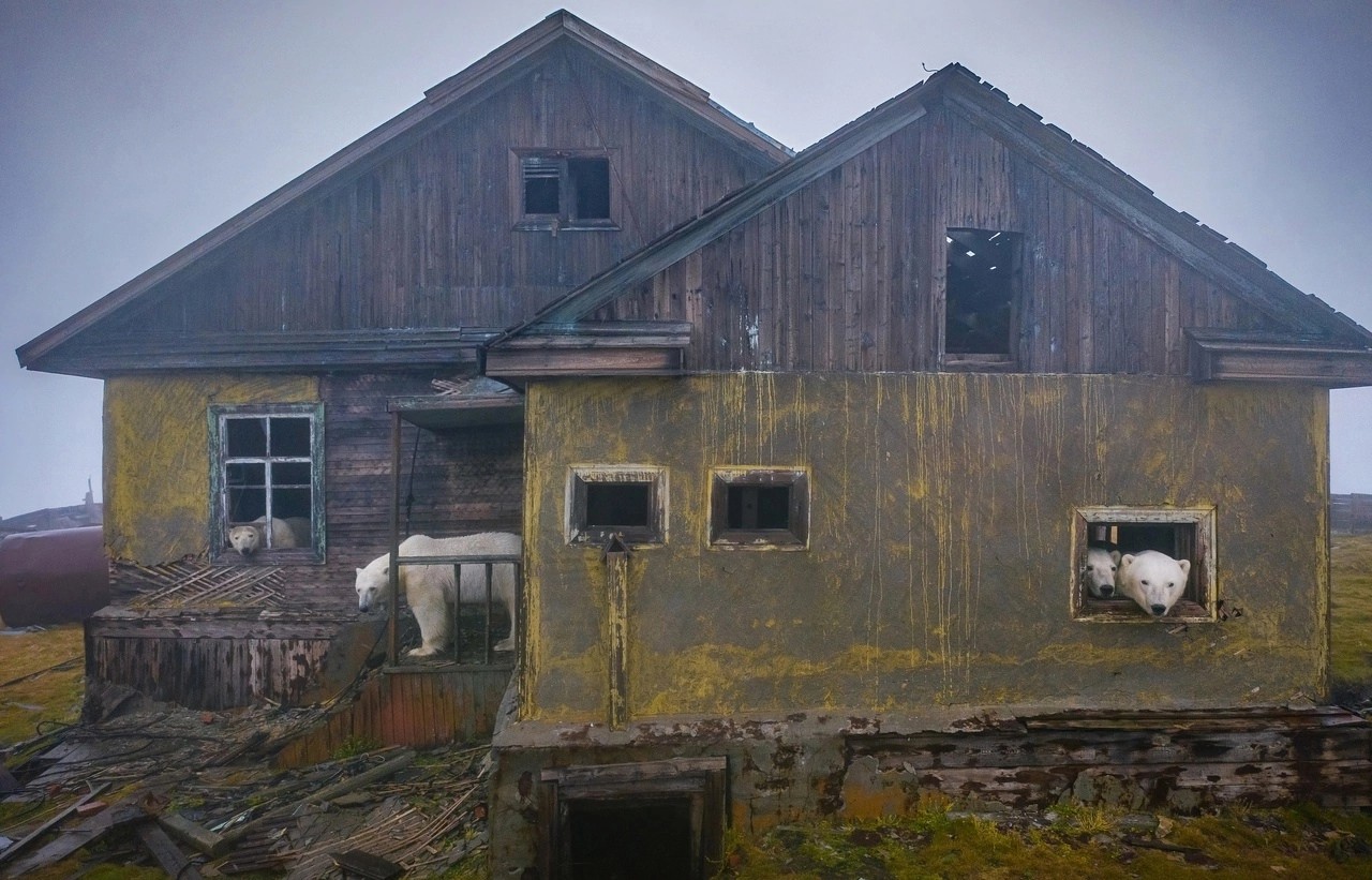 Дачный сезон. Автор завораживающих снимков стал победителем конкурса от National Geographichttps://www.amic.ru/news/ekologiya/dach ... cii-494928Фотограф Дмитрий Кох занял первое место в конкурсе "Дикая природа России" от журнала National Geographic в категории "Городские джунгли". Он запечатлел белых медведей, облюбовавших заброшенную метеостанцию на острове Колючин в Чукотском море. Свою работу под названием "Дачный сезон" автор сделал с квадрокоптера. Сама станция стоит отчуждённой уже почти 30 лет. В конце 1980-х годов на ней было всего несколько человек, а в 1992 году её закрыли.