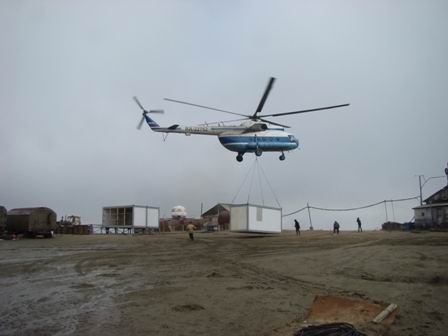 Выгрузка разборных домов и оборудования полярной станции заняла много времени и сил. Наконец, наступил торжественный день, мы послали в эфир первые позывные нашей рации. Новая полярная станция, созданная в высоких широтах Арктики, таким образом, официально вступила в строй. В действительности же наши строительные работы только начинались. Жить приходилось в палатках. Очень обрадовал нас летчик Михаил Титлов, прилетевший 22 октября прошлого года с Большой Земли и сбросивший на наш остров спальные мешки и свежие газеты. Но вот кратковременный праздник закончился, и — снова работать, работать не покладая рук.