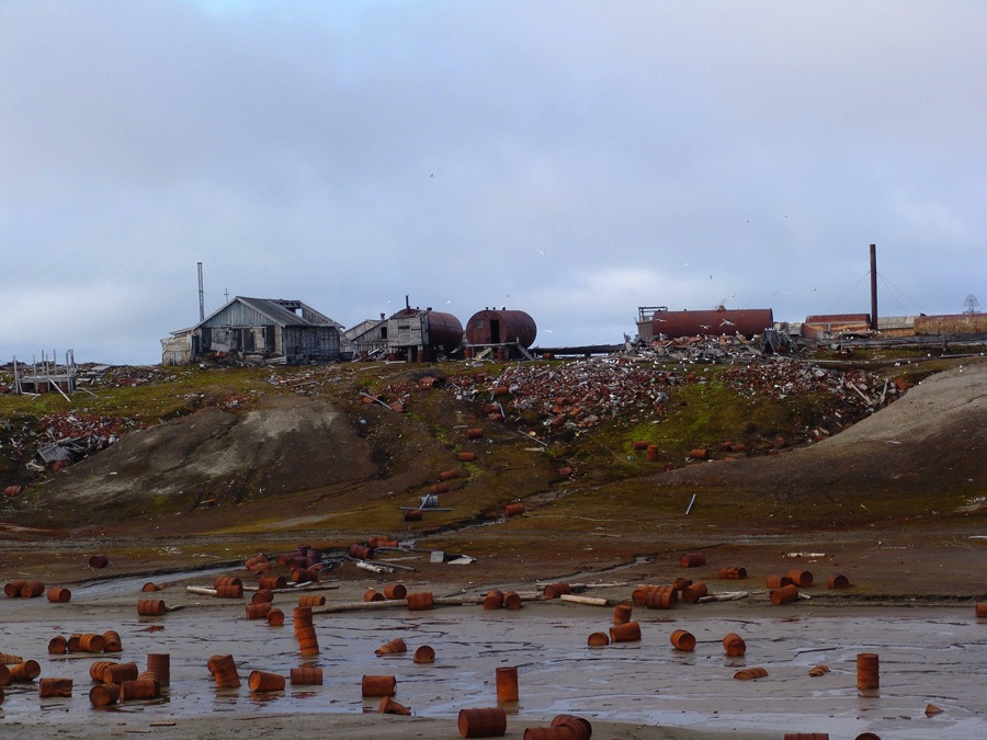 Экипаж высадился на засыпанном ржавыми бочками островке. Вокруг на сотни миль ледяная вода. Да и сам остров выглядит давно покинутым.