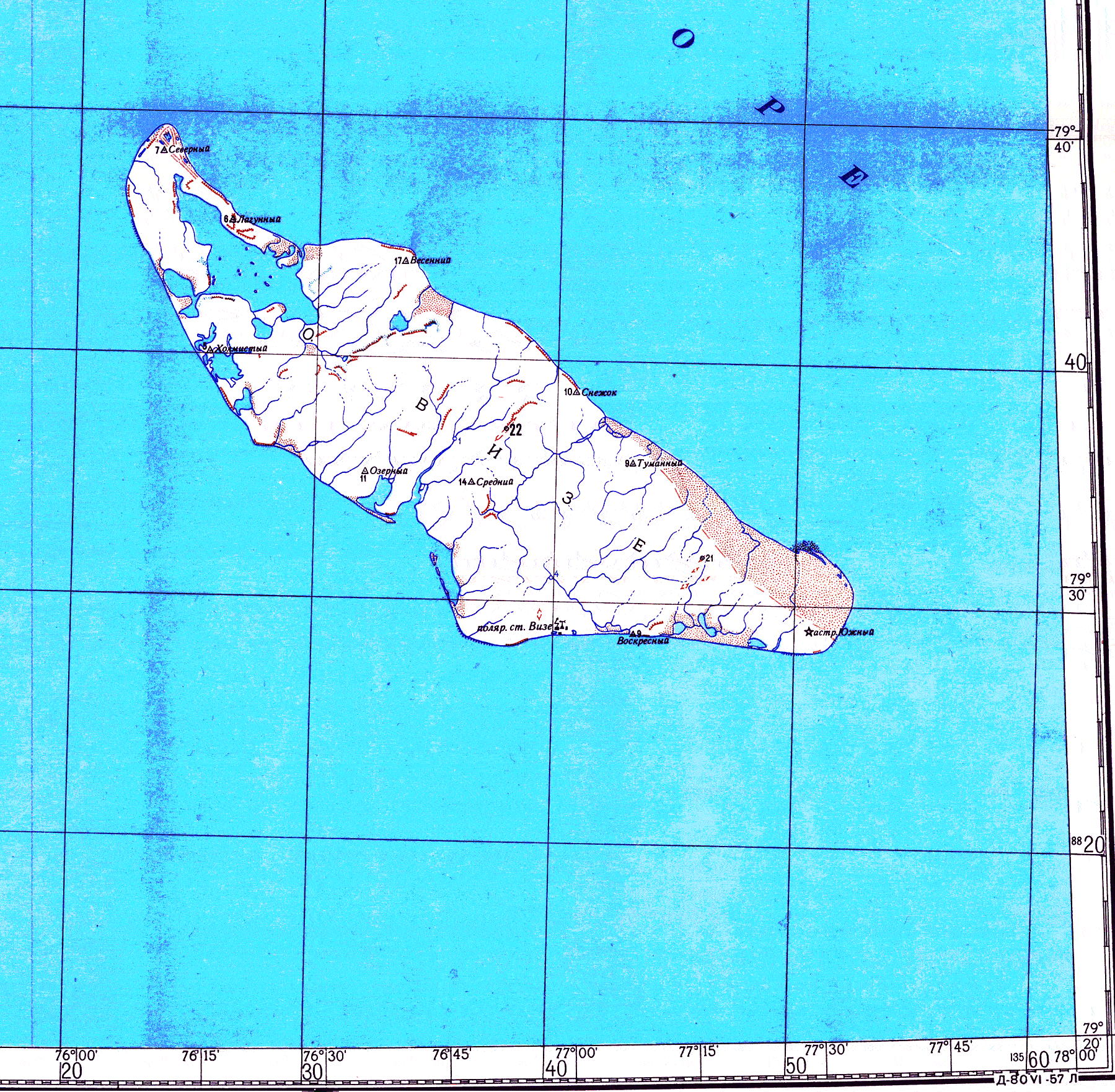 Остров Визе (Широта - 79. 30' северная, долгота - 76. 59' восточная ).