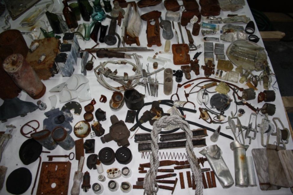 Вот только некоторые экспонаты, найденные при последних изысканиях: прицел дульного гранатомёта Schiessbecher, транспортная капсула авиационная (контейнер), плащ-палатка немецкая Zeltbahn образца 1931 года, корпус мины-лягушки Springminen, ботинок немецкий военно-морской Schnurschuhe, банка консервов «Португальские сардины». Книга H.J. Kitzing «Vergingen in Paris» Berlin, 1941. И многое другое. Вообще, к моменту начала работ национального парка, на Земле Александры ещё находилось много разных предметов, оставшихся от войны.Найденная бочка из-под топлива Вермахта, август 2012 года.