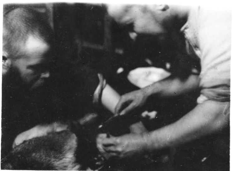 . В медпункте п/с "Бухта Тихая" на о. Гукера (арх.Земля Франца-Иосифа). Справа - врач Б.Д.Георгиевский