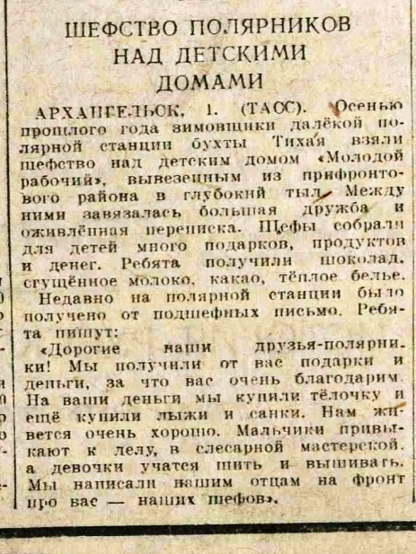 ]Шефство над детдомами //Вечерняяя Москва 2 февраля 1943