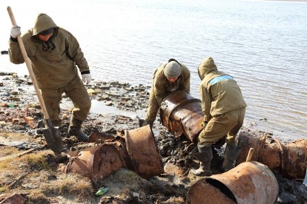 Очистка острова волонтерамиМежду тем за время работы людей на острове его территорию порядком загрязнили. Воинская часть оставила острову наследство в виде сгоревших строений, техники и цистерн из-под дизельного топлива.