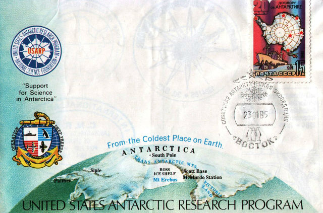 От нашего коллеги Юрия Пронина (UZ9RR) получил скан QSL-карточки со станции "Восток". С его любезного разрешения выложу здесь: