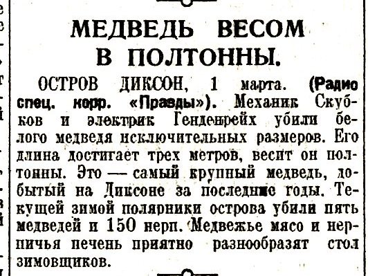 Медведь весом в полтонны//Правда,1935,№ 60(6306),2 марта