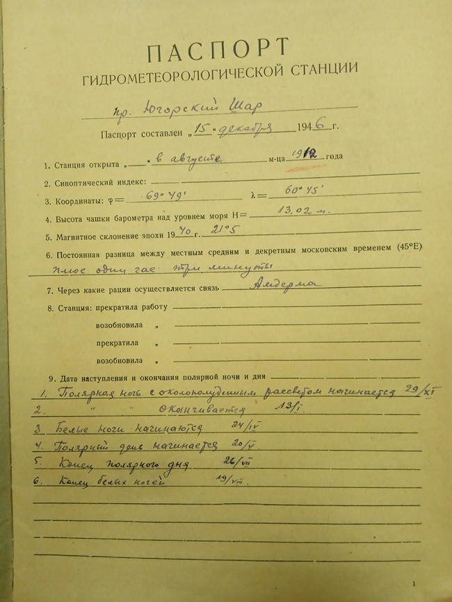 Паспорт ГС Югорский Шар. 1946 г