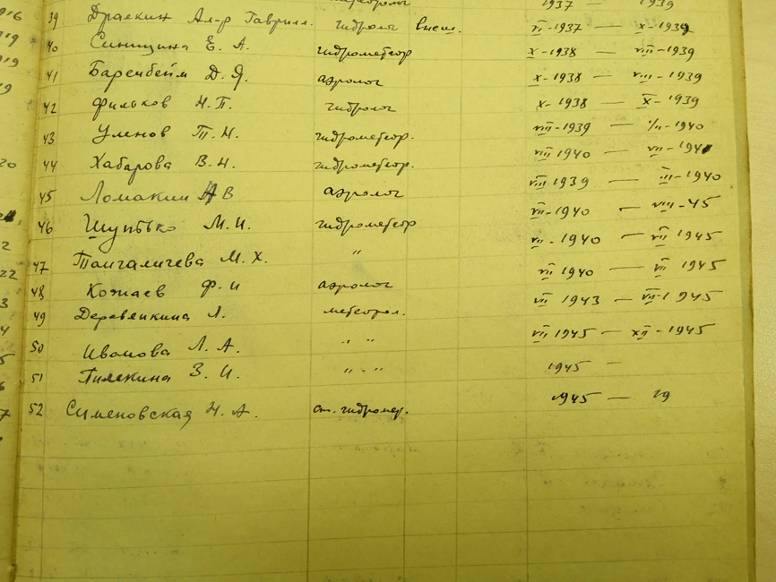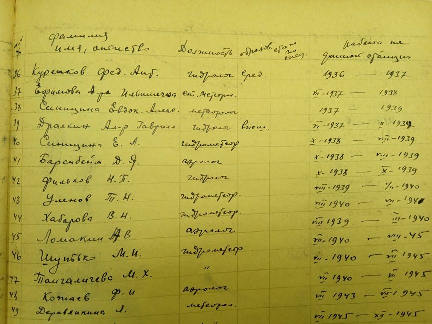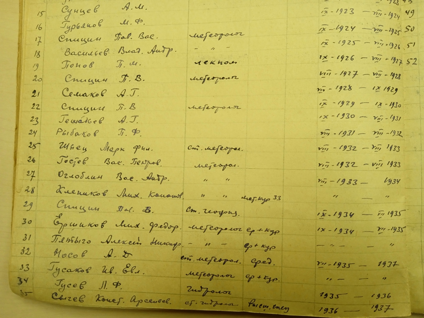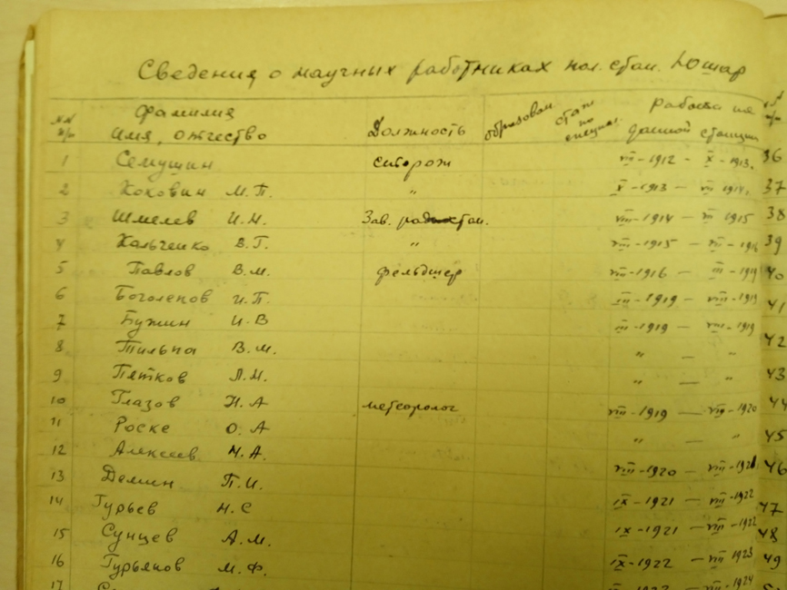 Список научных сотрудников на пс Югорский Шар.