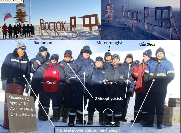 Станция Восток - это самое климатически суровое место на Земле, где просто дышать и ходить очень сложно. В июне 1983 года здесь зафиксирован температурный минимум планеты - минус 89,2 градуса. При этом здесь чрезвычайно сухой вымороженный воздух - в год выпадает не более 5 см осадков. Период адаптации человека к природным условиям Востока занимает несколько недель и нередко сопровождается кровотечениями из носа.