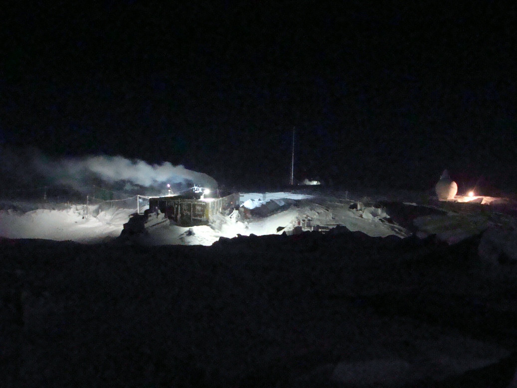 "Восток" зимой в полярную ночь. Снимок сделан в июне 2015. Все здания давно под снегом, снаружи только дизельная и аэрология.