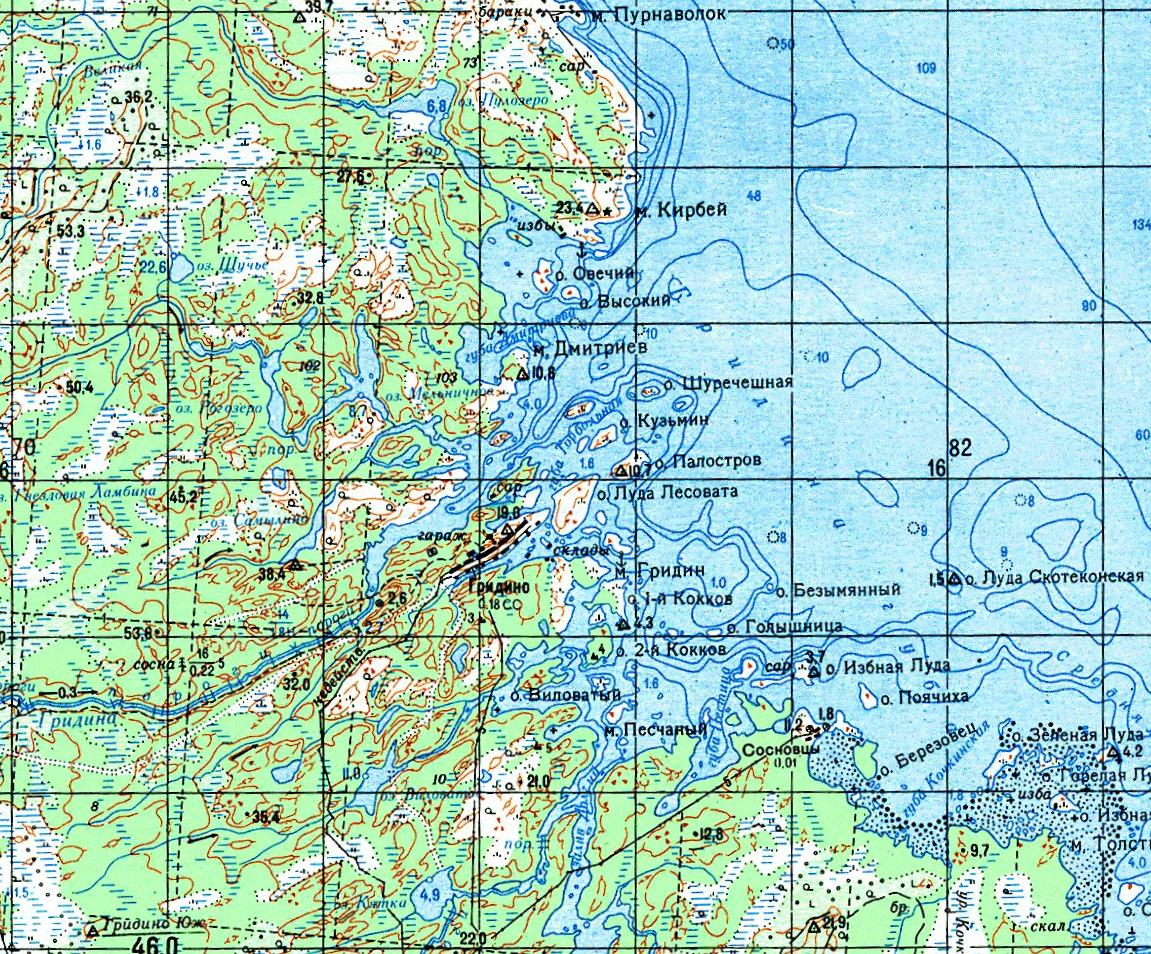 На посту баба Настя измеряет температуру речной воды, берет пробу для анализа, определения примесей бензина отправляет в Варкаус. Зимой ведет снегосъемку, определяет плотность и температуру снега. В деревне сидя на печи не проживешь. В свои 70 баба Настя подвижна, энергична. Ее дом о три окна стоит, как и все в Гридино, на высоком берегу губы. Дом срубили отец и муж Герман, когда был жив. В большинстве местных изб по две печи — русская и голландка, а вот у Михниной хватило одной русской. Горница по-женски заботливо прибрана, есть электрическая печь, СВЧ, электроумывальник. Залив под окнами, но то — море. За питьевой водой Анастасия Рамиловна идет полдеревни; зимой на санках удобно катить бидон, а вот летом потягай!