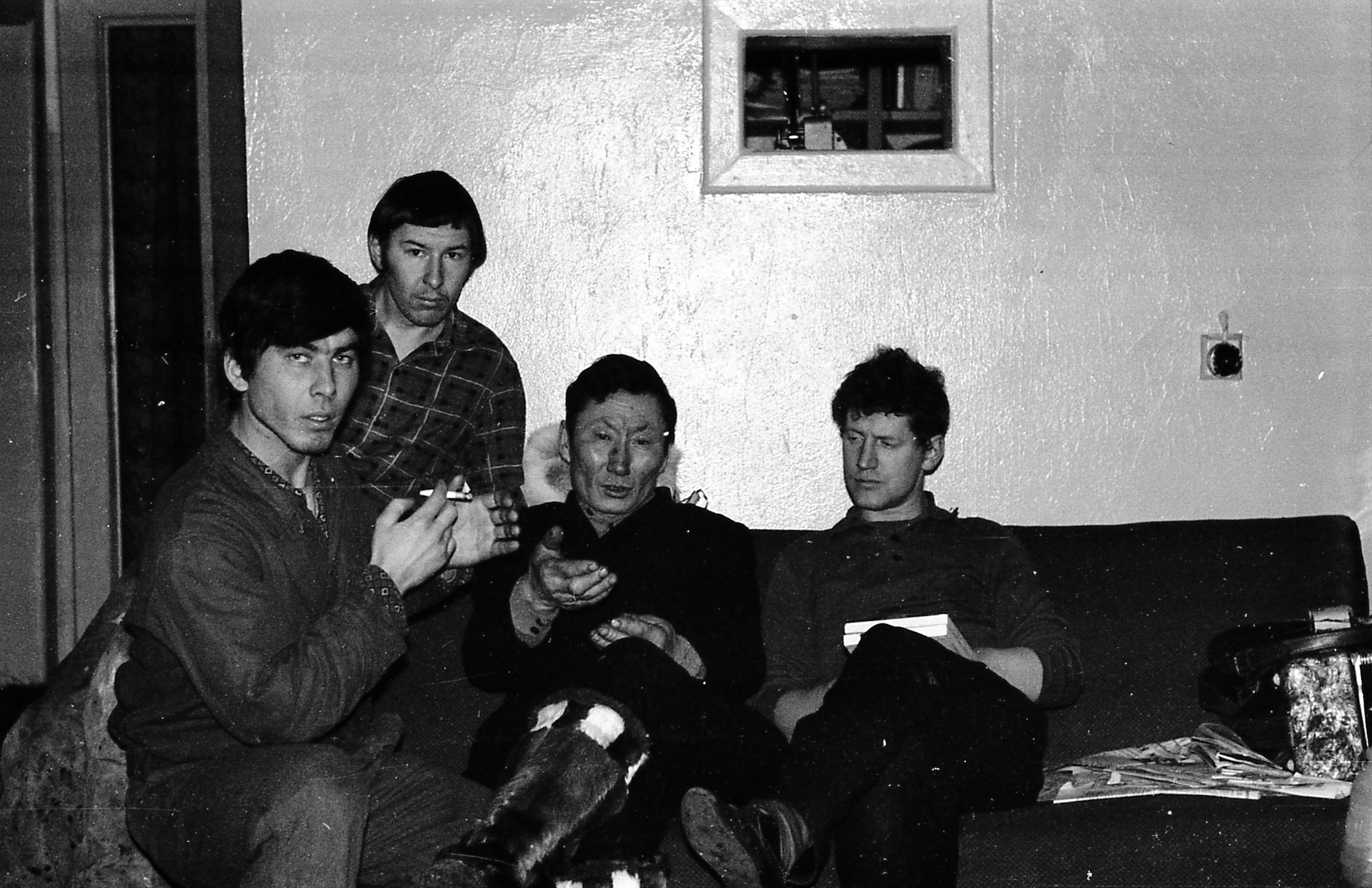 Зимовочный состав п/ст: радист-метеоролог Геннадий, радист-метеоролог А.Гришин, местный житель – охотник, начальник п/ст., радист-метеоролог В.Уткин.