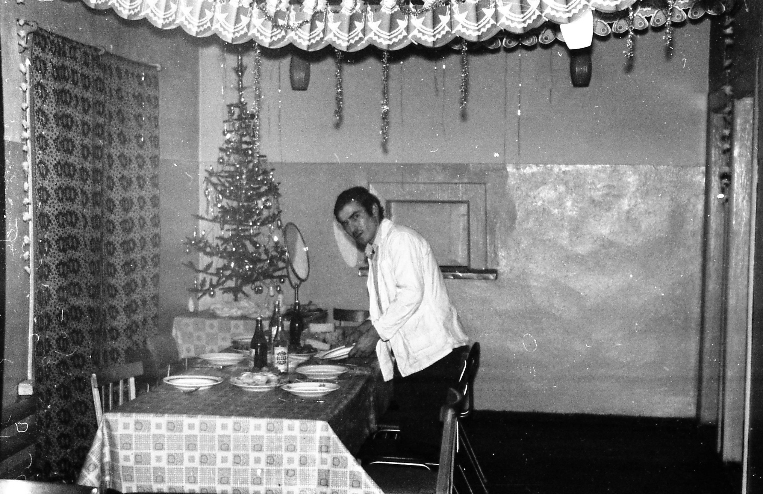 Было изготовлено 2 трехлитровых банки довольно вонючего пойла, средней крепостью градусов 30 – на безрыбье и это здорово. Но, примерно за 2 часа до Нового Года на столе появилась водка.