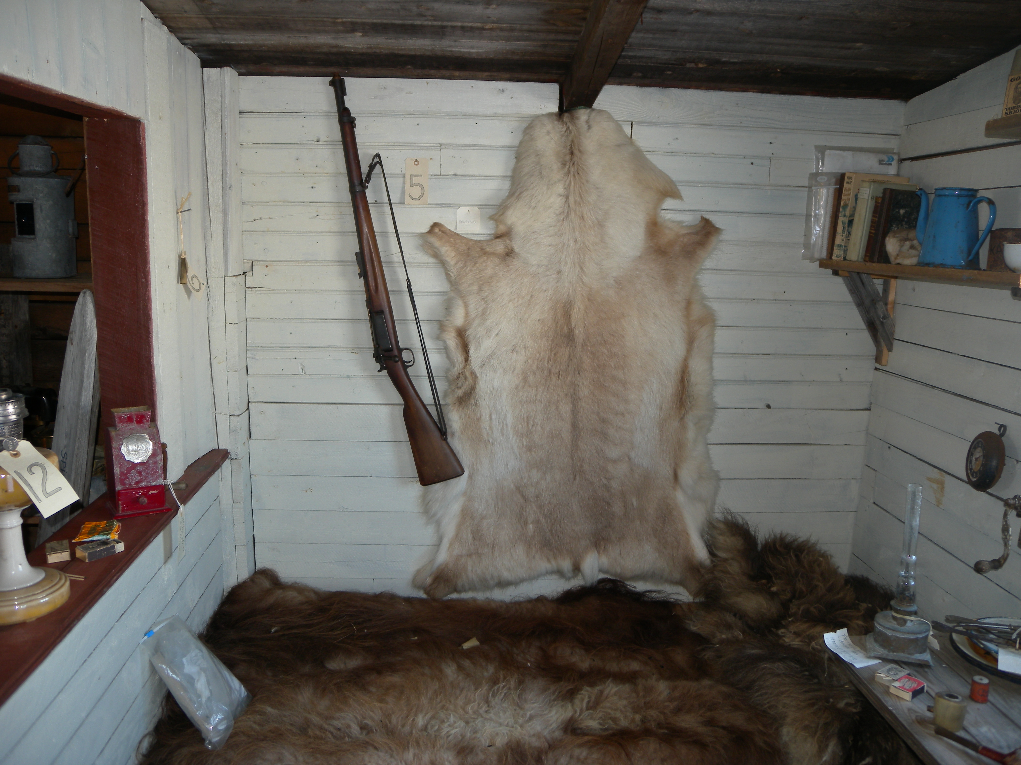 К 70-ти летию Победы. В 1943 году произошло можно сказать единственное "сражение" между датским патрульным Эли Кнудсеном и немецкими десантниками, которые сидели в охотничьей избушке. Кнудсен в последний момент увидел, что избушку заняли вражеские полярники, и думал проехать мимо и уведомить кого надо. Но те засекли его и стали стрелять по собакам, чтобы остановить патрульного, но смертельно ранили его, и, к сожалению, спасти его не удалось. В результате его похоронили его чин по чину рядом с избушкой сопроводив крест надписью "Er starb für sein Vaterland". После войны датчане заменили надпись на такую же только на датском. Рядом находится небольшой музей с артефактами тех времен и не только (например коллекция винтовок Краг, о которых упоминал Брусилов, называя их "норвежскими"). На соседнем острове была неплохая датская исследовательская станция, которую тоже посетили немецкие гости. И "союзники" ничего лучше не нашли, как разбомбить ее в дребезги уже после ухода непрошенных гостей. Датчане до сих пор не могут простить этого американцам. Тянет их прям патологически бомбить то, что не может пальнуть в ответ.