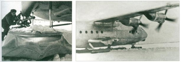 Самолет Ан-12 стал одной из последних тяжелых машин, для которых было разработано и применялось лыжное шасси. Причем заказчиком в этом выступали не только гражданские организации, работающие на Крайнем Севере и в Антарктиде, но и ВВС.