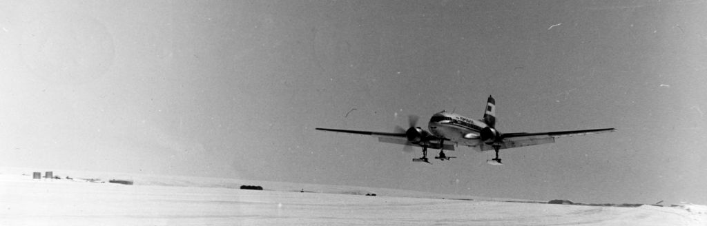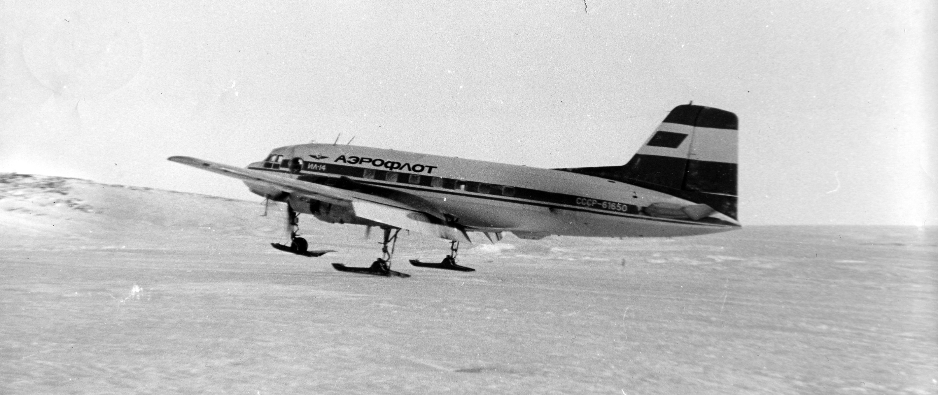 ... За три дня (с учетом перелетов) поменяли двигатели на Ил-14 номер 61650. Наши маршруты все дальше смещались на запад. Из-за ограниченного запаса топлива на борту приходилось вылетать с базы на мыс Весткап, подбирать площадку, дозаправляться, делать «выстрел» в море, снова возвращаться на Весткап и только потом уходить на базу. Устойчивая хорошая погода в январе способствовала успешному выполнению намеченных планов.»
