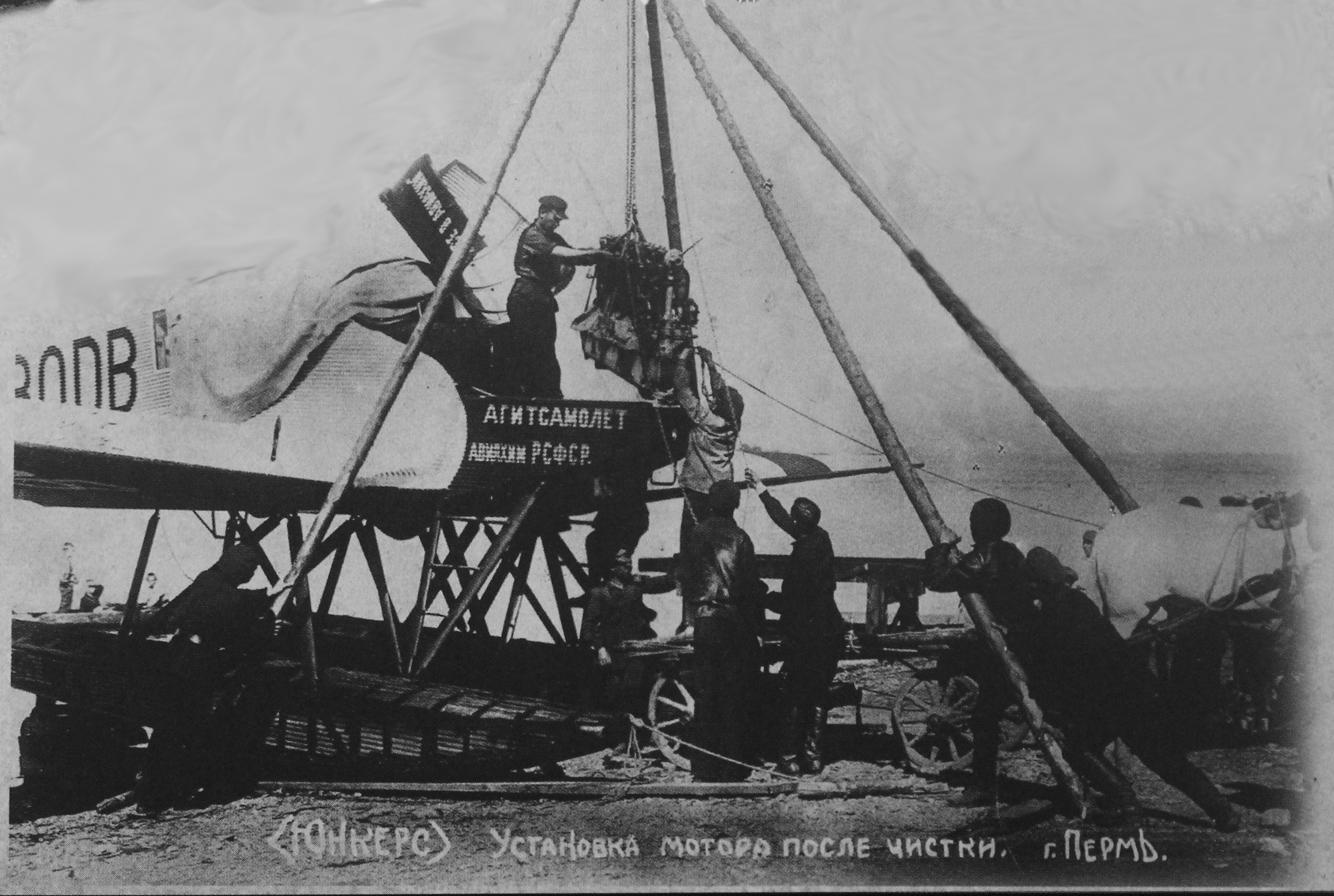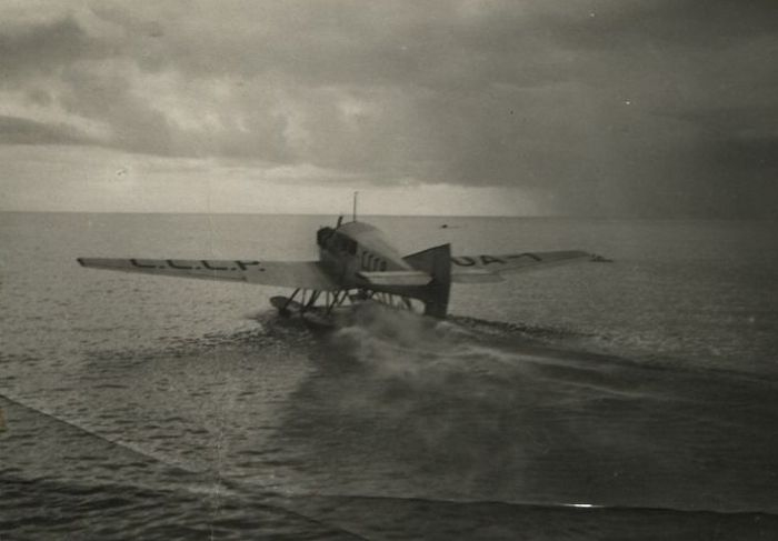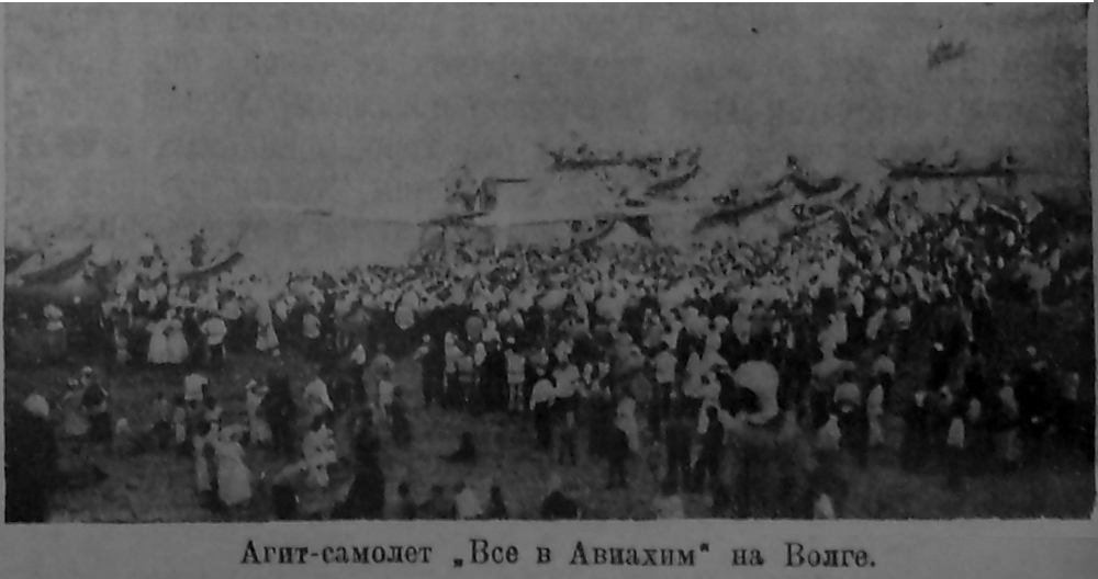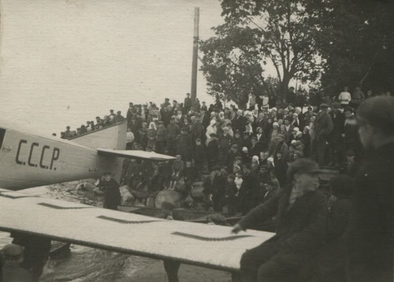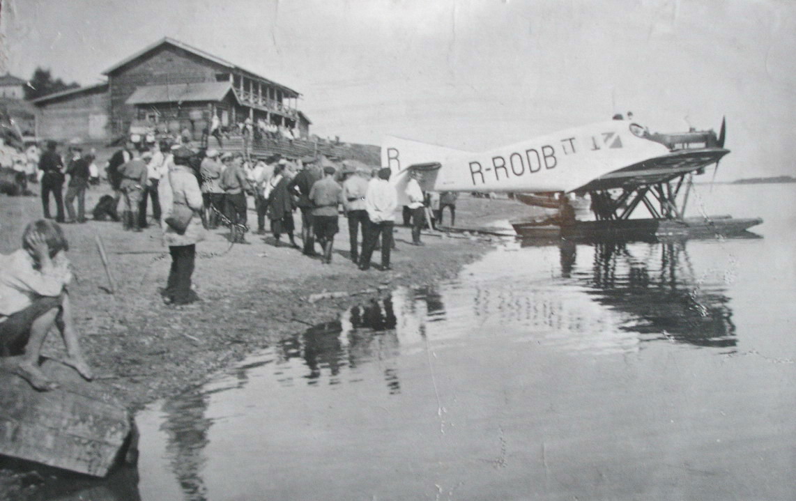 В фондах Белозерского музея хранится коллекция фотографий самодеятельного фотографа г. Белозерска Василия Васильевича Кичагова. Он оставил нам замечательную фотохронику Белозерья 1920 — 1930-х гг. В условиях дефицита фотобумаги, пленки, кризиса, который переживало фотодело в СССР, В.В. Кичагов сумел отразить жизнь города во всех ее проявлениях. Среди прочих в его коллекции находим фотографии с изображением гидросамолета, который в сентябре 1928 года приземлился на Белое озеро в районе города Белозерска. На борту самолета крупным текстом надпись: «Агитсамолет ОСОАВИАХИМА СССР — все в ОСОАВИАХИМ». Для населения города это было событие. Судя по датам, указанным на фотографиях, самолет в течение четырех дней с 12 по 15 сентября находился в Белозерске. При приземлении самолет врезался в берег, один из поплавков слетел со стоек шасси. На фотографии мы видим, как группа мужчин старается приподнять корпус самолета, чтобы закрепить слетевший поплавок. Все, от мала до велика, шли на озеро, чтобы посмотреть на чудо техники. По рассказам очевидцев, желающих-смельчаков на самолете катали над озером. Это была своего рода наглядная агитация.