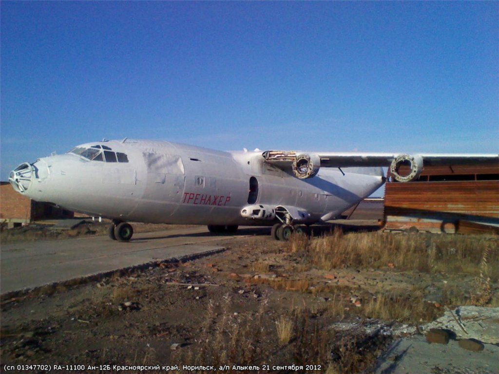 Ат-12ТБ RA-11100 (01347702) Эксплуатантом являлось Красноярское УГА, Норильский ОАО, 434 ЛО, а/п Алыкель. Произведен 25 января 1971 года. Имел цветовую схему "Полярной авиации". Поступил 1 апреля 1971 года. Зарегистрирован 15 апреля 1971 года, как СССР-11100. В 1992/1993 году перерегистрирован, как RA-11100. 22 декабря 1995 года передан в а/к "Норильск Авиа". Списан 12 апреля 1999 года по отработке назначенного ресурса. Используется в качестве пожарного тренажера для тренировок СПАСОП на аэродроме Алыкель.