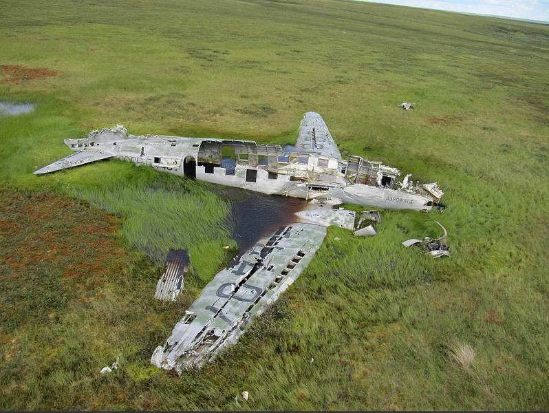 Взято от сюда - http://sibir79.livejournal.com/367382.html Говорят что была аварийная посадка, стойки шасси подломились, самолет не стали вывозить из неренатабельности, а экипаж просидел в тундре два дня.